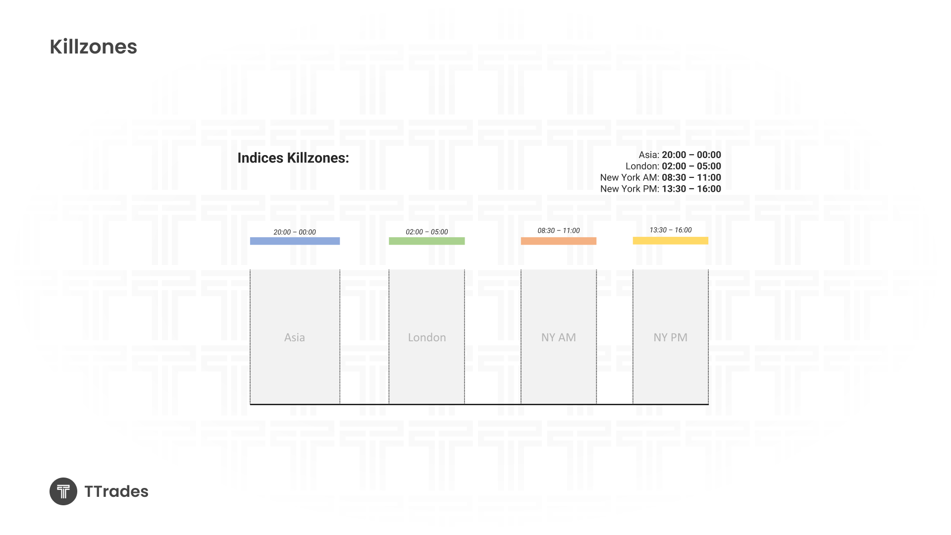 Before using session liquidity, it’s important to know when the sessions occur. For indices, the focus is typically on the Asia session, the London session, and the New York AM session.