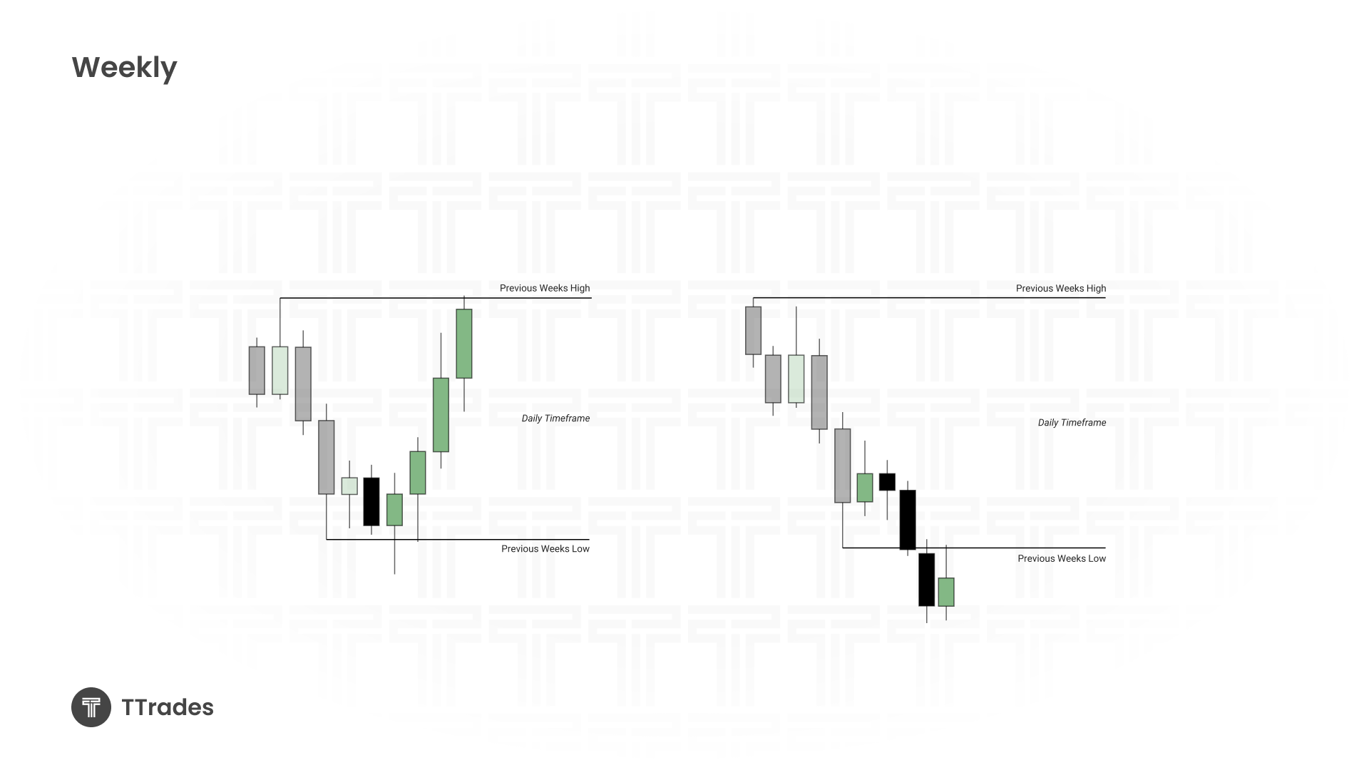 Weekly highs and lows are useful for framing intermediate term bias, identifying weekly reversals, and determining whether price is expanding or balancing. When price displaces and closes beyond a weekly level, it often signals continuation toward the opposite side of the range.