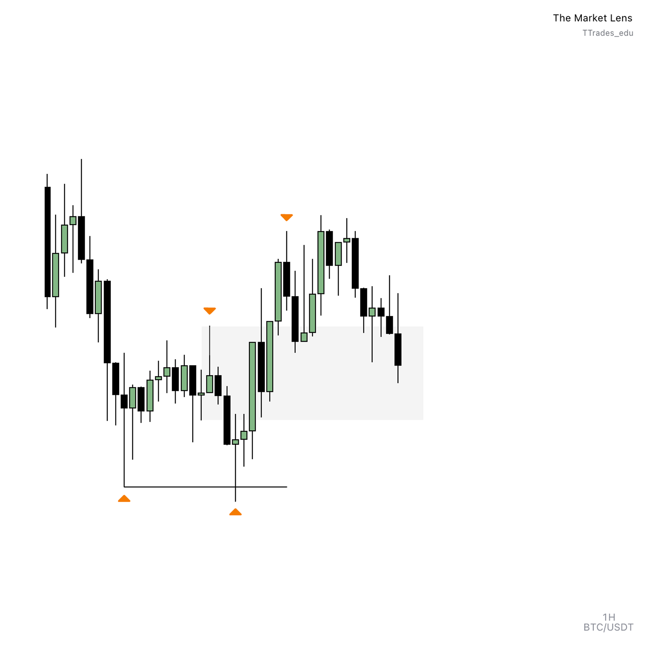 • Price trades in a range, sweeps the range low, and shifts bullish with a higher high.