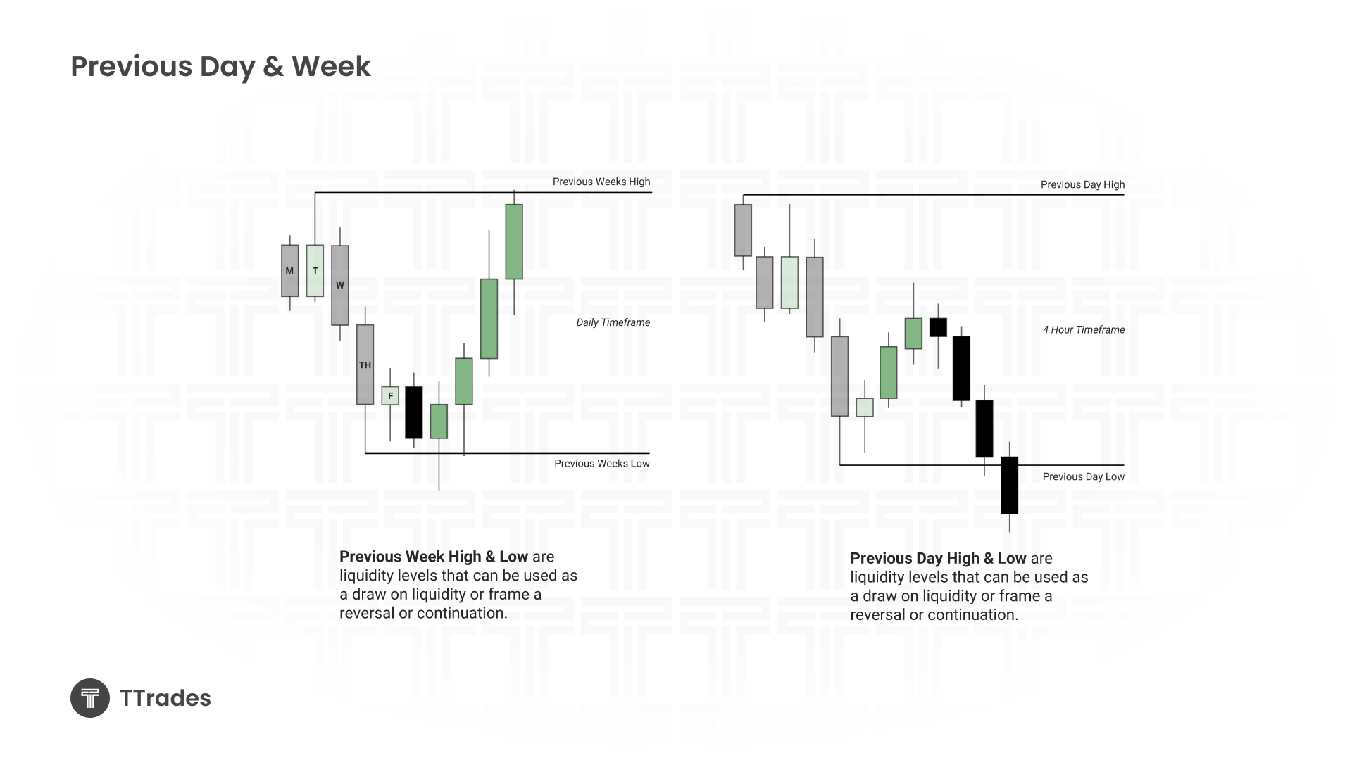 Previous day highs and lows function similarly but on a smaller scale.