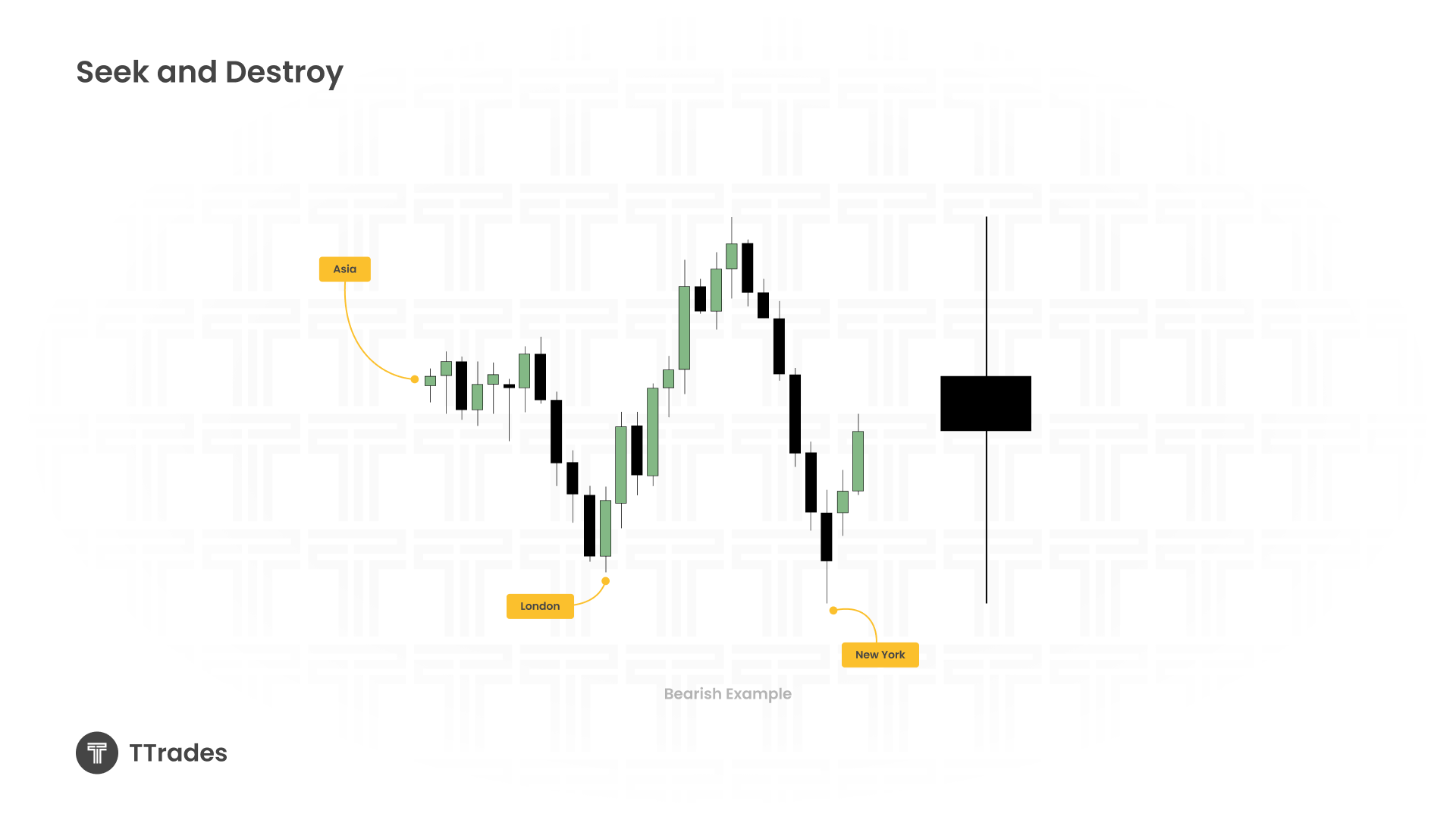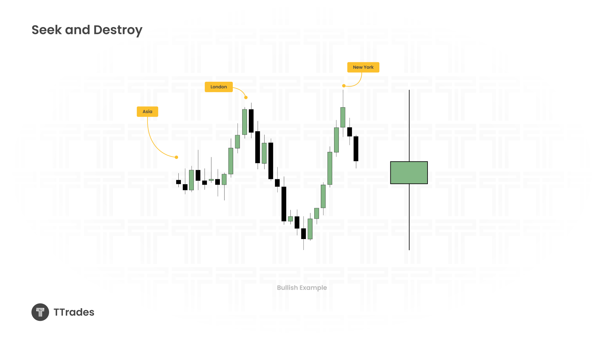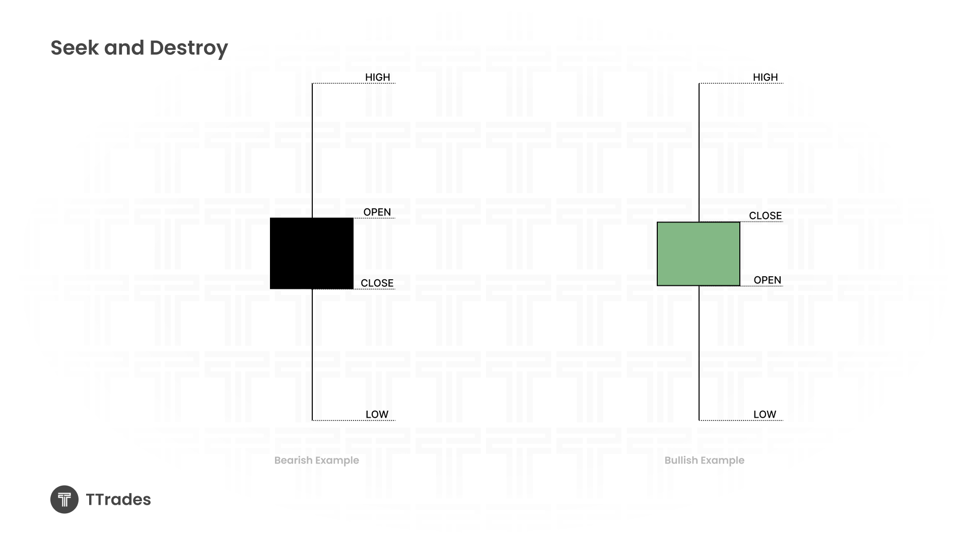 On the daily chart, a Seek and Destroy profile appears as an indecision candle, where price opens and closes around the same level, showing little to no clear direction.