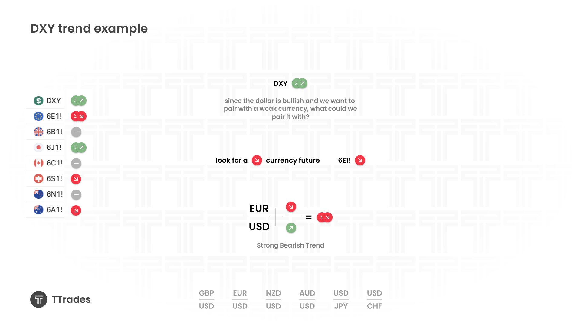 If DXY is trending lower, the dollar is weak. In that case, you want to pair it with the strongest available currency.
