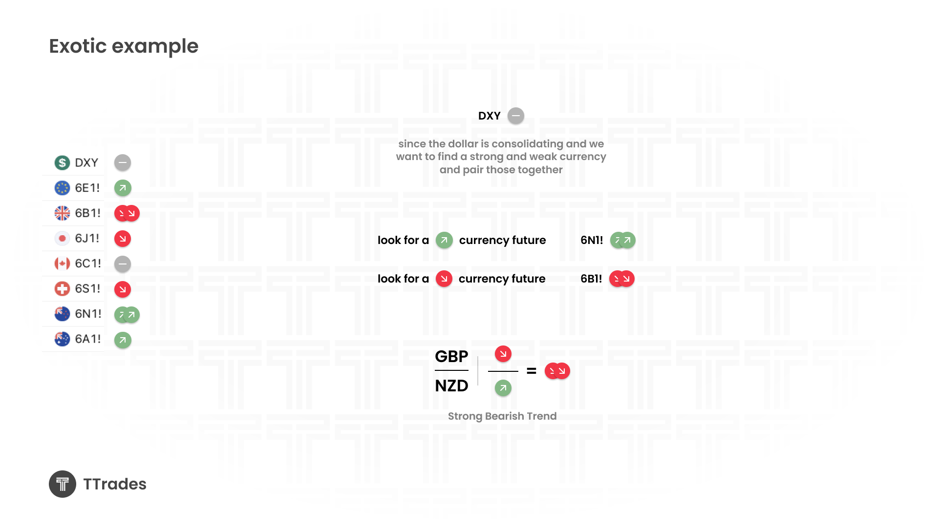 For example, If GBP is bearish and NZD is bullish, you could look at GBP/NZD.