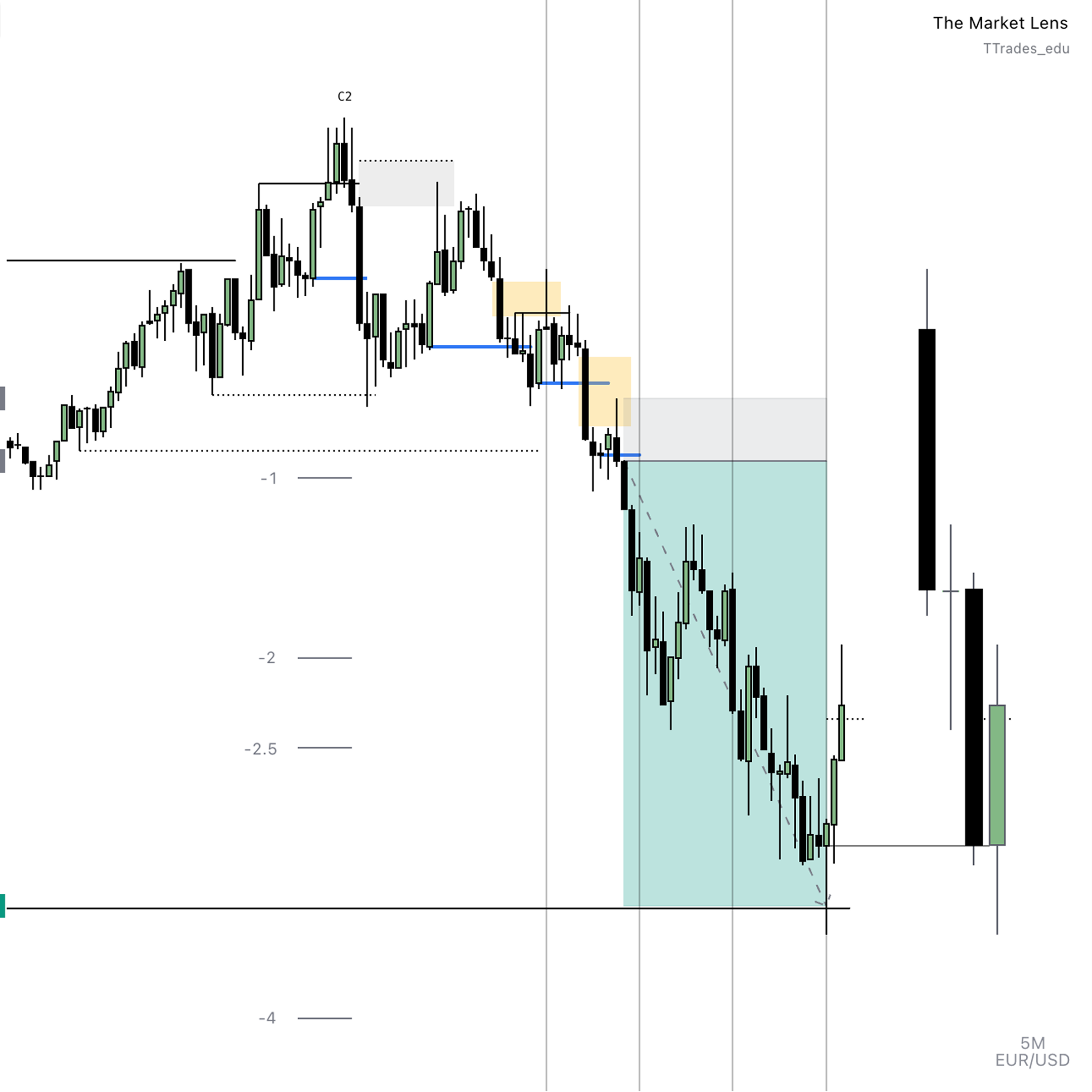 💡 Pro Tip: Look to target the daily or hourly levels for higher R:R. The 2R trade above becomes 7R when reaching for the previous day low daily target. Even 10R+ when holding until end of day close. Expansion candles tend to close near the high or low of the candle.